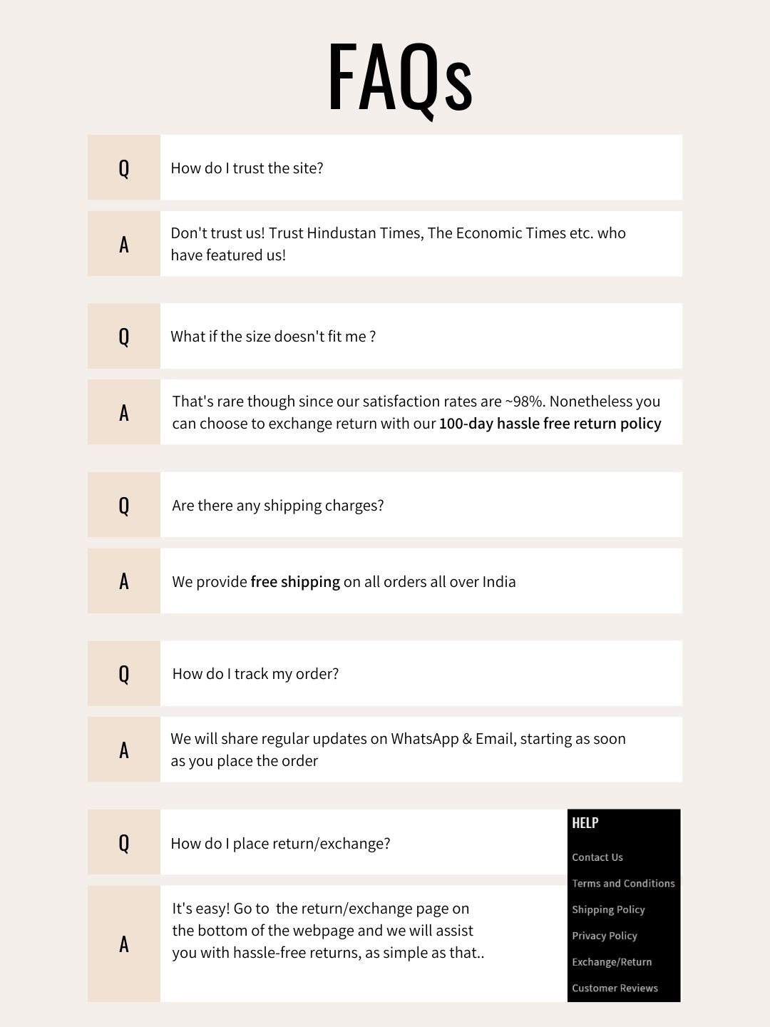 That’s rare! Honestly, our outfits fit well in the first go in 99% of the cases. In case you still face any issues with fit or size, there is always a 100-day free “single click” exchange and return available.