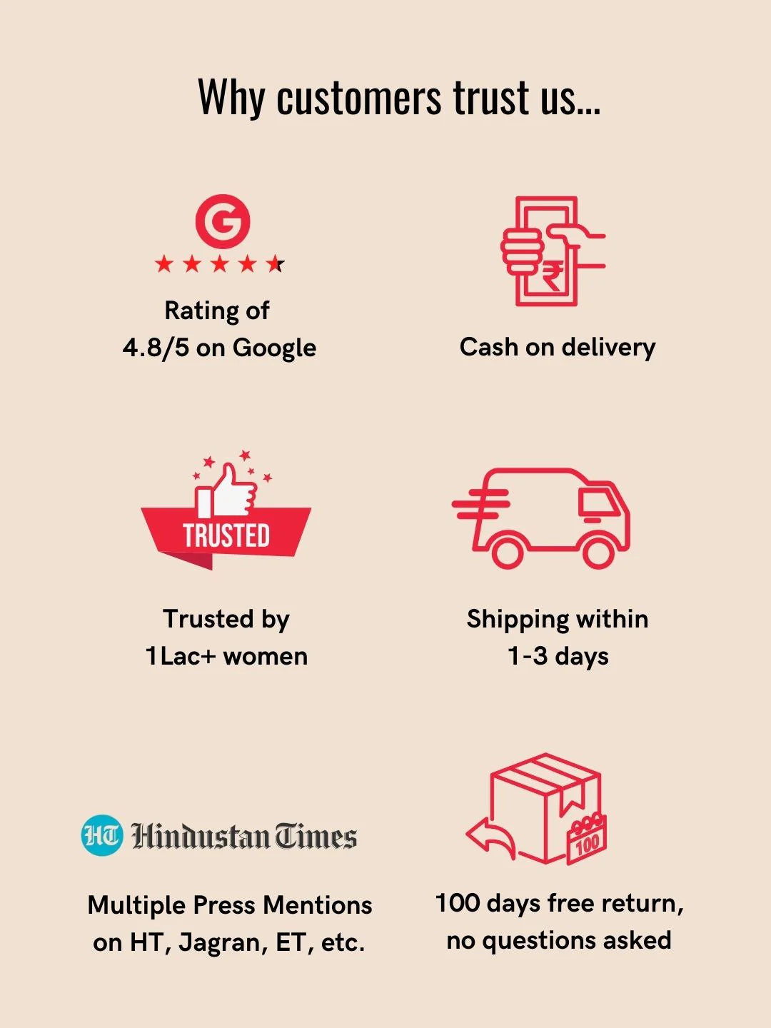 Let us drive away your anxiety. We are rated 4.8/5 star on Google with 1000+ reviews. We are trusted by 51000+ women from across Bharat. Not just that but we have been featured ib major publications like Hindustan Times, Indian Express, CNBC, Economic Times etc.